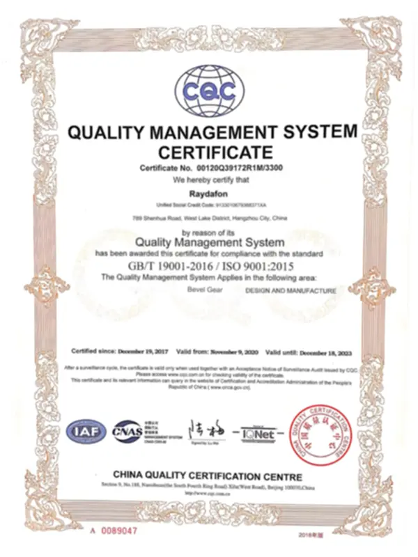 Raydafon چندین گواهینامه بین المللی را برای اطمینان از اینکه محصولاتش مطابق با استانداردهای کیفیت جهانی است، گذرانده است. ما گواهینامه های مهم زیر را در حدود سال 2015 به دست آوردیم: