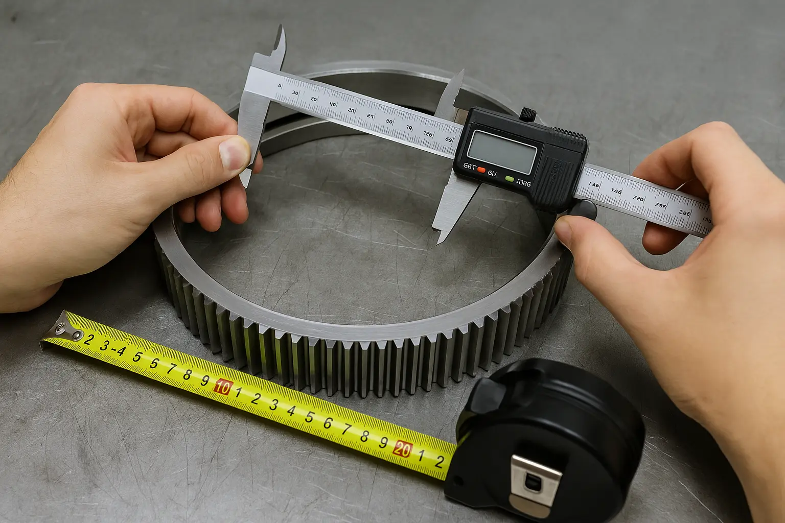 برای اندازه گیری فاصله از بیرونی ترین لبه حلقه چرخ دنده تا بیرونی ترین لبه که اصطلاحا "قطر بیرونی" نامیده می شود، از یک کولیس استفاده کنید. این مقدار فضای اشغال شده توسط حلقه چرخ دنده را در ساختار کلی تعیین می کند. نمی تواند خیلی بزرگ یا خیلی کوچک باشد و باید با موقعیت تجهیزات اصلی شما مطابقت داشته باشد.